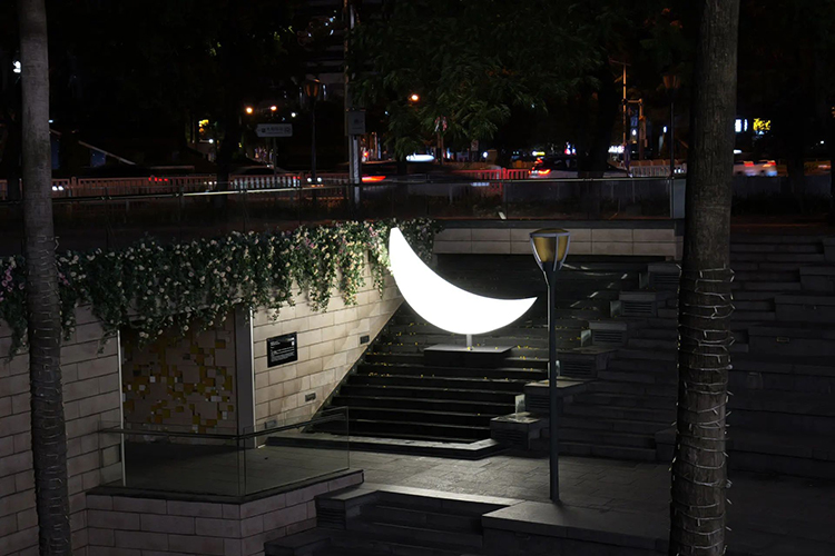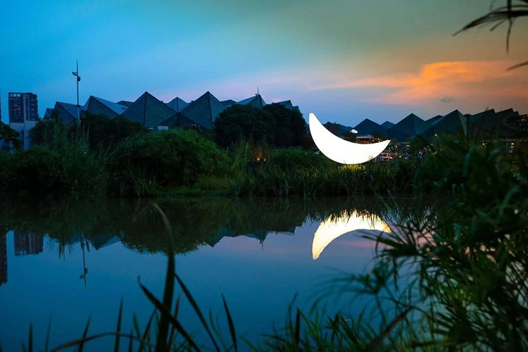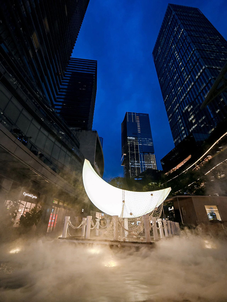 “私人月亮”也曾漂洋過海來到中國,在成都的麓湖cpi島的潮聲中,在蘇州平江路的小河里,在浙江安吉的山谷間……去年,“私人月亮”駐足深圳,點亮鋼筋森林,也走入煙火人間,這場名為 “月亮漂流計劃”的旅行,斬獲了2025第八屆金燈獎的卓越創意大獎。誰是全球旅行最多的 "藝術游子"?答案在月光里。