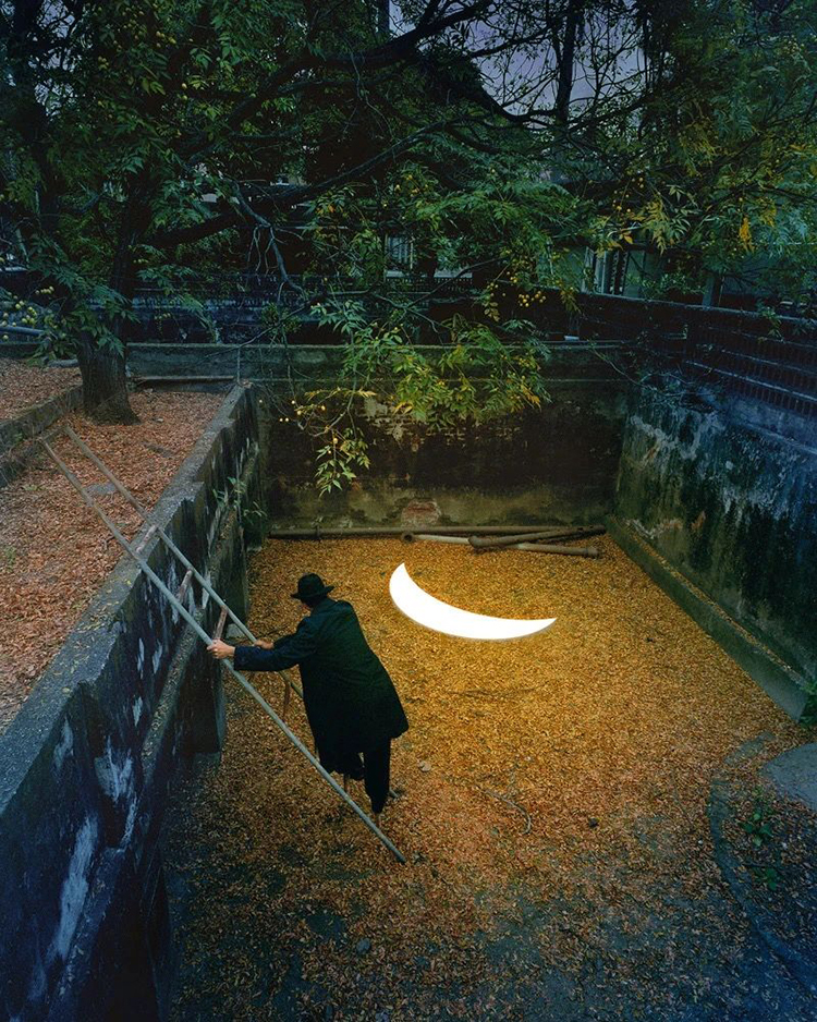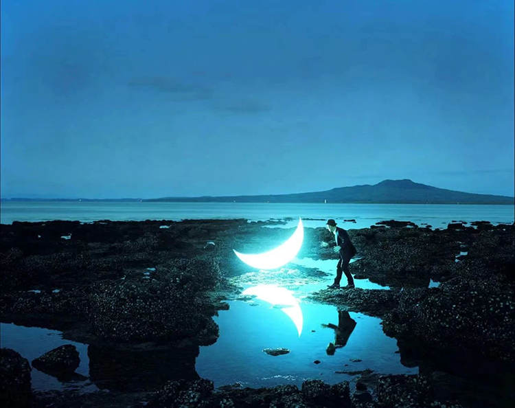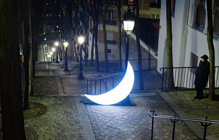 在列昂的宇宙詩篇里,月亮扮演他的繆斯、演員與情人,這場羈絆貫穿了整20余年的視覺私奔——他攜著被賦予女性身份的“新月”跨越山海,巡展足跡遍布30多個國家與地區。從新西蘭的極光到北極的冰川,從巴黎埃菲爾鐵塔到英格蘭的玫瑰莊園,從紐約的摩天大樓到羅馬尼亞的森林,從瀨戶內海的城市車站到越南的水巷竹筏……他們銀灰的足跡遍布31個國家與地區。