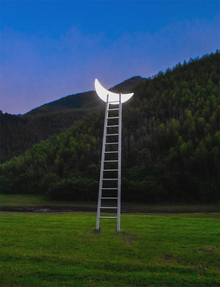 浸淫于卷帙浩繁的中國詩海,列昂與詩仙李白產生了精神共振,詩仙的恣意與哲思注入流動的月光裝置中,當周圍的空間轉化為詩意的劇場,月亮成為了列昂作品里“私藏的、可觸摸的詩”,訴說著全人類關于孤獨、陪伴與永恒的故事,因此稱他為“月亮先生”也不為過。