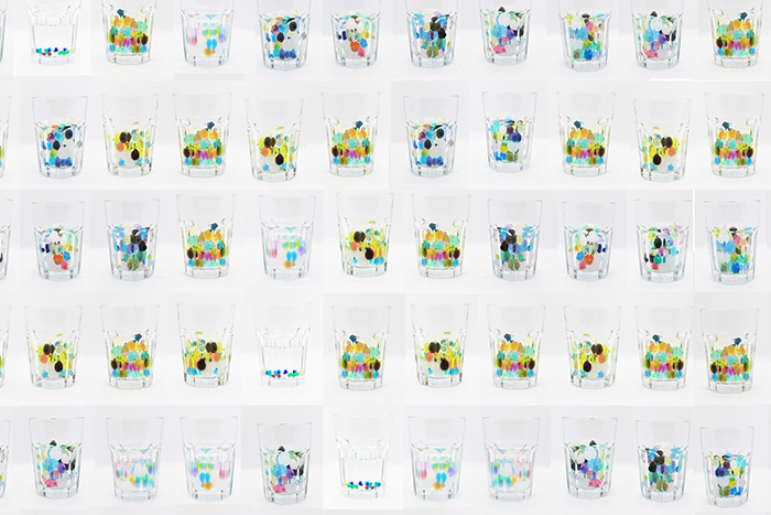 這類問題意識在祎婧后期的創作中日益顯性,尤其是在材料選擇與數據可視化的整合中得以深化。2021年,《micro-+plastic》作為她創作轉向的標志性作品,展示了她從內在情緒空間走向廣闊社會議題的嘗試。該作以世界衛生組織的數據為基礎,構建了一個可沉浸、可交互的展覽場域。觀眾手中的玻璃瓶內裝有1克樹脂顆粒,象征每日人均釋放的微塑料量,觀眾將其置于展臺時即觸發音景裝置,播放由65種塑料聲構成的污染“樂章”。