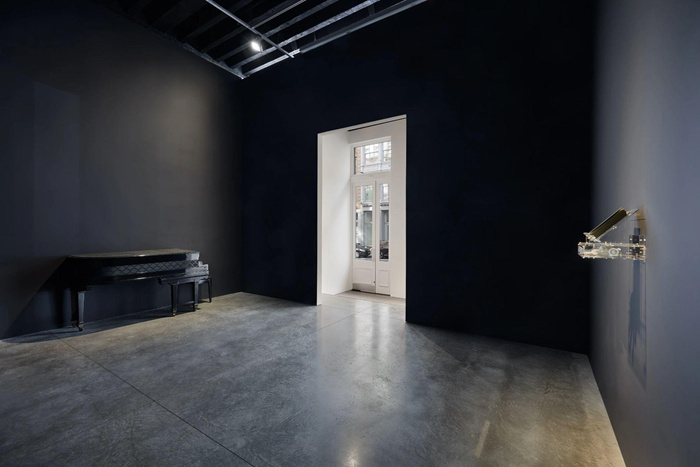 展覽的第一件作品是一架破裂的鋼琴,橫穿畫廊街邊的櫥窗墻體,似乎從內部沖撞而出。它既像一個意外,也像一種意志。這件作品提出了整個展覽的一個核心主題:被切斷的表達、被錯置的聲音,以及邊界的撕裂。