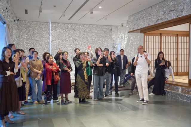 本次策展人、中外藝術交流平臺“藝來藝往”創始人何飛先生引領觀者深度觀展。他指出,本次實踐藝術展以“無·相·生”為主題,蘊含對“無有之中,萬物實有。有無之間,萬物歸無”的深度思考,與藝術家在情感、學術層面關聯緊密。袁恒在現場的實踐藝術、裝置作品,均帶有“在地性”,依據現場空間進行獨特創作,此次借由廿一文化空間的東方場域,展現當代藝術與傳統文化充滿張力的對話關系。