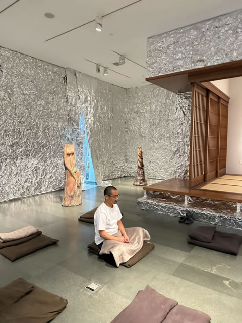 置身于銀白色褶皺錫紙包裹的萬千倒影之中,“存在”并非一成不變,反倒似萬千流動的思緒,處于動態的變化中。這也契合了《論語》中“子在川上曰:逝者如斯夫,不舍晝夜”所傳達的對時間與變化的深刻洞察,讓東方智慧在當代藝術中有了更具象化的呈現。