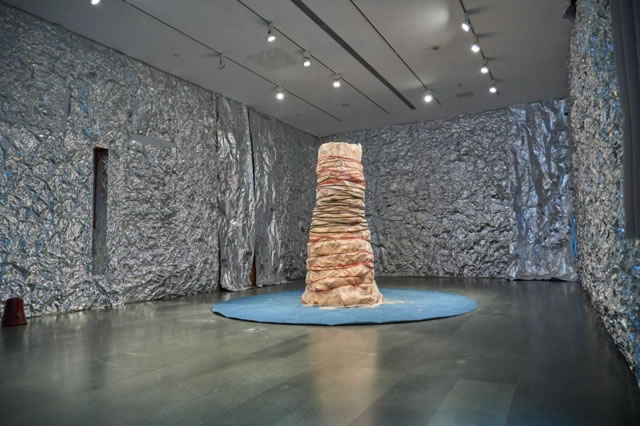 物境的解構重組,為情境的共創提供了豐富的素材。展廳內,錫紙包裹所有墻面,構建出虛實交錯的物境。錫紙與自然陶土、東方場域亦形成天然反差,這一設計絕非簡單的裝飾之舉,而是一場對原有藝術認知的大膽挑戰——借用日常生活中觸手可及的現代文明產物,打破觀者對材料和創作的固有認知界限,讓傳統陶土在工業材料的映襯下迸發新生。