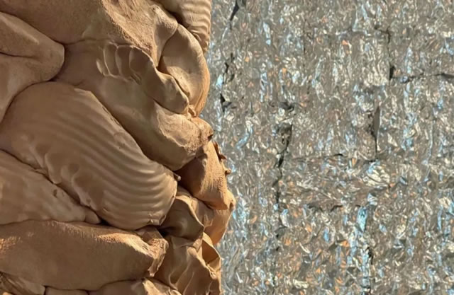 銀白色褶皺錫紙與自然陶土形成天然反差