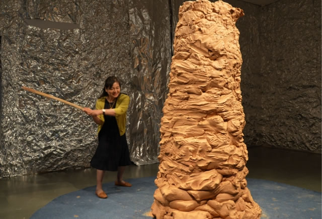 情境中觀者的參與,進一步豐富了意境所傳達的文明內涵。展廳內,碩大泥柱牢牢占據空間的主位,經由藝術家與觀者不斷重復的塑形、毀壞的靜默行為,撕掉了當代藝術慣用的概念標簽。觀者的身份悄然發生轉變,從單純的旁觀者成為與藝術共生、與場域共在的創作者,以直接的實踐藝術行為,完成各自在這場藝術實修之旅中獨一無二的“生命印記”!這個過程也詮釋了“共生、共建”的命題,與廿一文化所倡導的理念不謀而合——讓藝術真正回歸大眾,成為生活的一部