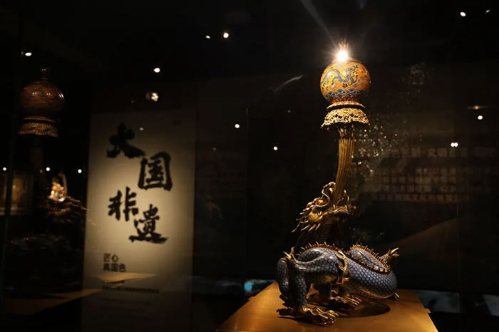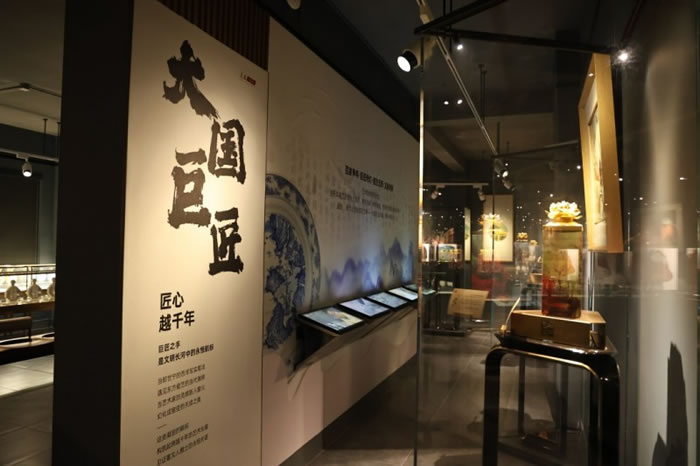 在大國陶瓷、大國巨匠、大國非遺、大國榮耀四個主題展廳中,五糧液濃香酒公司一行領導全方位了解不同文化主題的策展理念與藝術價值。四個主題展廳如同四個平行宇宙,古與今在這里交疊相生,從不同角度構建出立體的文化時空。
