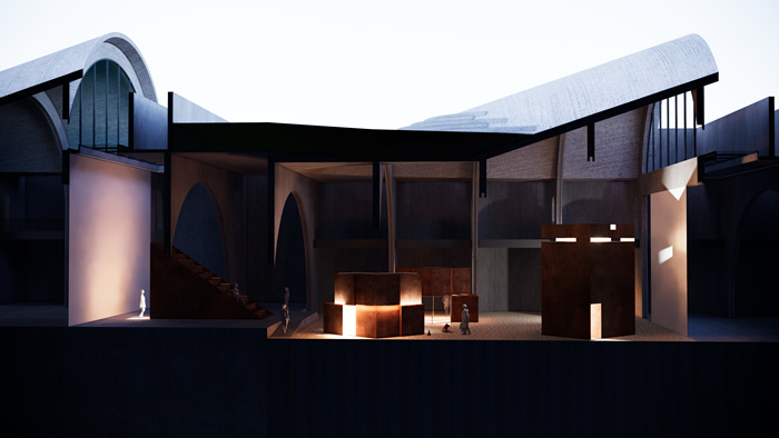 本次展覽由中央美術學院設計學院師生共同策劃,在龍口市政府、地方企業的大力支持下,攜手20余位國內外藝術家開展實踐,匯聚了教育、藝術、技術與政策多個維度的力量,以黑夼村采石場為研究對象,探討龍口鄉村需要什么樣的敘事?鄉村生態為主體視角的敘事是怎樣的?以及我們作為被敘事者和聽眾,如何傾聽采石場的聲音?鄉村的聲音?以集體策展的方式回應鄉村的呼喚,回應當下鄉村發展中所面臨的文化記憶、技術轉型與空間更新等問題。因此,整個展覽基于鄉村“圖像、剖面、聲音、全息、身體”幾種視角形成一場五位策展人基于鄉村現實的集體共構實驗。