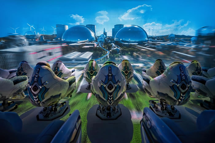 劇場內部采用了先進的3D投影技術,配合定制化的座椅和音響系統,為觀眾營造了一個全方位的沉浸式環境。與傳統的影院不同,這里的座椅可以獨立升降,具備三自由度的運動能力,這種設計不僅增加了觀影的趣味性,更讓觀眾能夠在身臨其境中感受影片內容。此外,為了實現更真實的沉浸效果,設計團隊在座椅下方設置了低音炮,并在每個座椅的左右方均設置了獨立的聲道,從而確保音效的真實性。