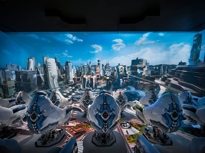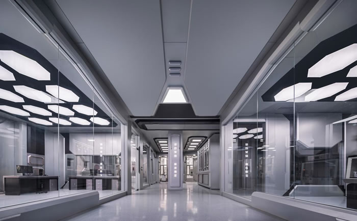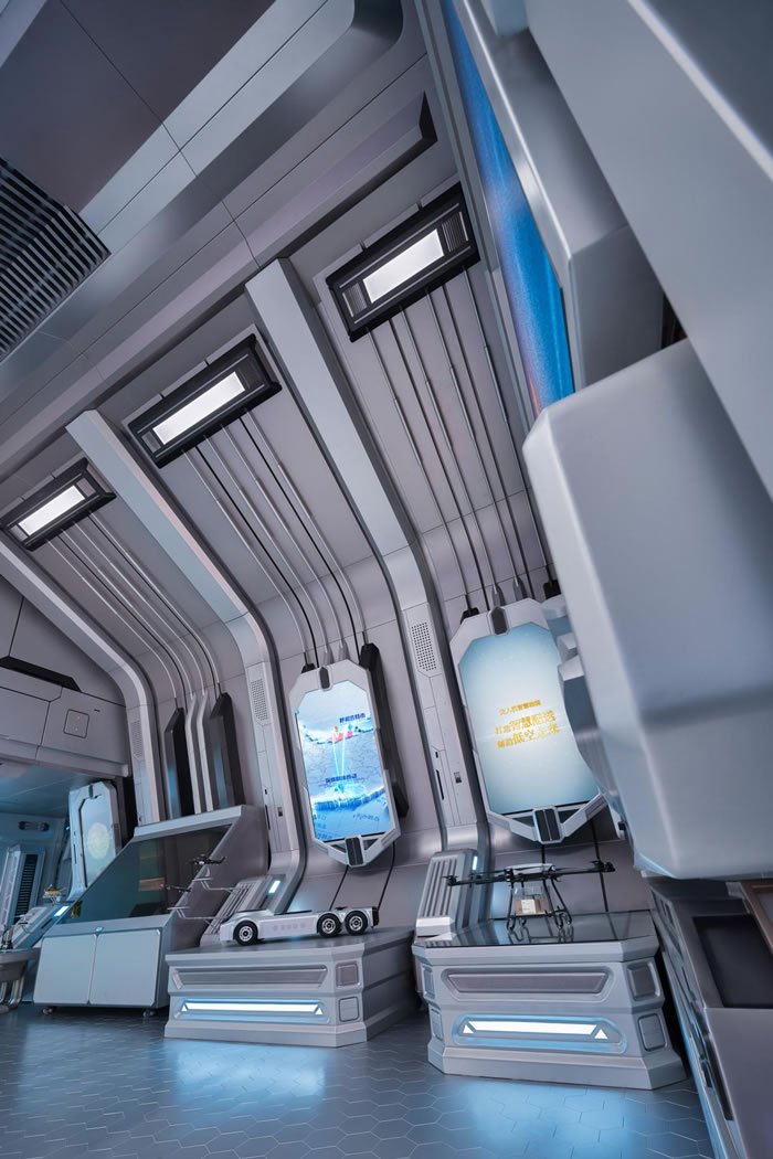 整個展廳就像是一架從未來穿越回來的太空飛船,觀眾置身于其中,彷佛進行了一場時空之旅。
