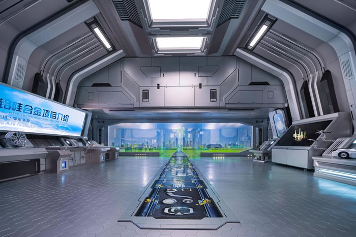 “這次,整個展廳就是一次非常強勢甚至是極端的裝修。展現高鋁粉煤灰制備鋁硅氧化物及氧化鋁、變形鋁與鑄造鋁,到鋁的深加工產業及產品。整個展廳的硬裝就是最全面的全鋁材料展示,應用了最先進,最全面的制作加工技術,毫米級的品控標準。整個展廳的裝飾就是對鋁業的綜合展品與技術的全面詮釋,讓展廳自己說話,以實現不證自明的效果。讓來客感受到,我們展廳既能做到如此,完全可以相信我們企業的能力與實力!”