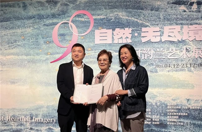 隨后,活動迎來溫情一幕。因故未能出席的江西省領導委托本次展覽出品方——圣陽文化傳媒(北京)有限責任公司董事長邱繼紅,向何韻蘭、劉峻頒發捐贈證書,以感謝他們向江西省美術館無償捐贈劉勃舒先生作品的義舉。邱繼紅表示,此次展覽不僅是藝術的呈現,更是文化傳承的見證。