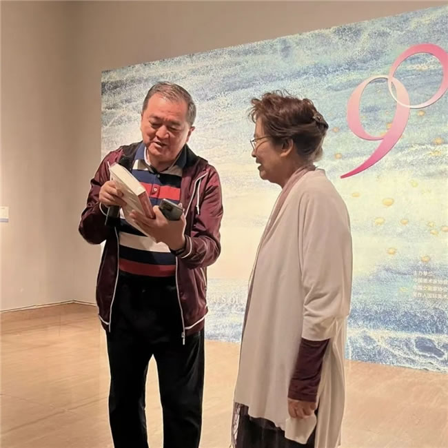 何韻蘭老師與吳為山館長現場觀展交流