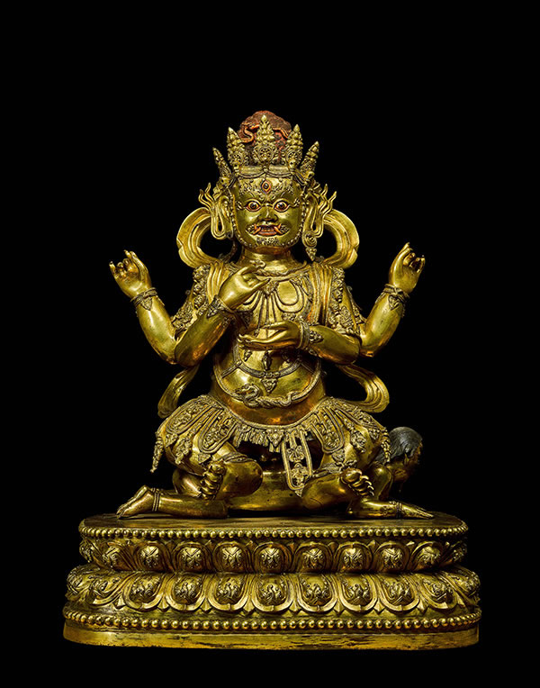 菩提曼拏羅基金會典藏 明宣德 鎏金銅四臂大黑天像 《大明宣德年施 》款 高 74 公分 估價:10,000,000 - 15,000,000 港元