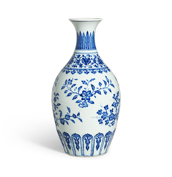 重要私人收藏 清雍正 青花折枝花果紋橄欖瓶 《大清雍正年制》款 41.2 公分 估價:15,000,000 - 25,000,000 港元