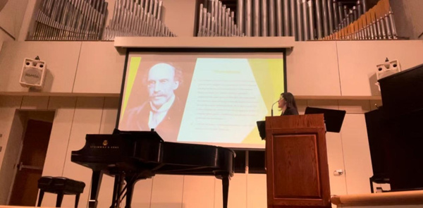 楊陳白雪應邀參加了亞利桑那州音樂教師協會2023年度的學術研討會,在“東西音樂藝術的碰撞”講座中,她以張朝老師的“滇南山謠”為例,介紹了中國鋼琴作品及其藝術價值,并闡述了東西方音樂審美差異,受到美國聯邦教師協會董事會的好評和聽眾的歡迎。
