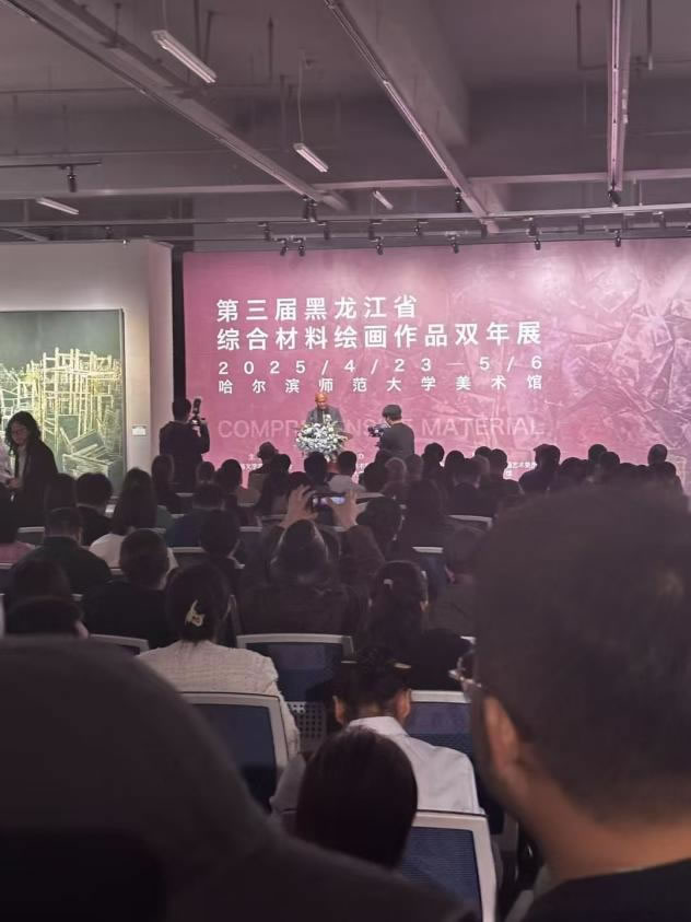 4月23日,由黑龍江省文學藝術界聯合會主辦,黑龍江省美術家協會、哈爾濱師范大學美術學院承辦,黑龍江省美術家協會綜合材料繪畫藝術委員會、哈爾濱師范大學美術館、《藝術研究》雜志社協辦的“第三屆黑龍江省綜合材料繪畫作品雙年展”在哈爾濱師范大學美術館開幕。