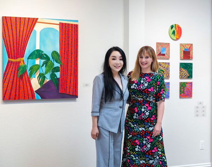 Kim Marra個人展覽《熟悉的陌生房間》開幕式現場,The Scholart Selection畫廊主Cindy Wang(左)、藝術家Kim Marra(右)