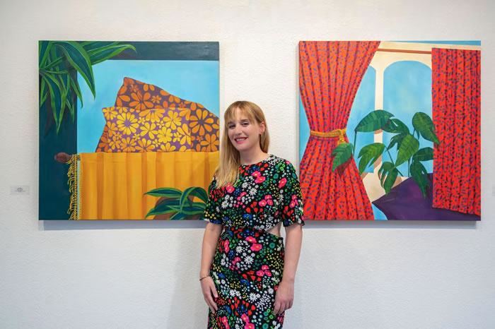 開幕當天,Kim Marra身穿一襲印花連衣裙,溫柔又自由的氣質與作品形成了完美呼應。展覽現場氛圍輕松自然,藏家們與藝術圈友人們圍繞作品展開了熱烈的交流與討論。