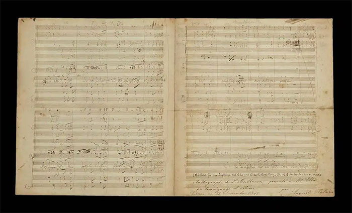展覽將展出貝多芬雕塑、版畫、死亡面模、貝多芬第九交響樂中《歡樂頌》主題版畫系列,同時展出來自國內藏家的罕見貝多芬親筆手稿二十余件,包括《奧菲爾之歌》《皇帝協奏曲》等重要樂譜手稿,另有貝多芬親筆書信、訃告、歌德、席勒、孟德爾松親筆書信等文獻,貝多芬最廣為人知的《第九交響樂》等十九世紀初版樂譜印本亦一并展出,展品共五十余件。
