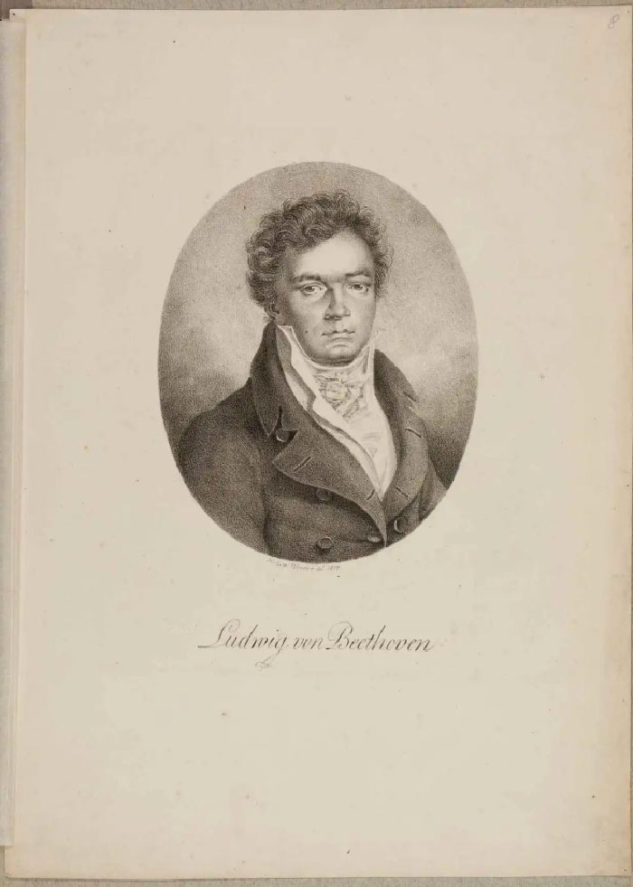 貝多芬肖像,海因里?!·溫特,1817年,平版印刷,39.4×28.4cm,收藏機構:普魯士文化遺產基金會-柏林國家圖書館音樂部(孟德爾松檔案館)