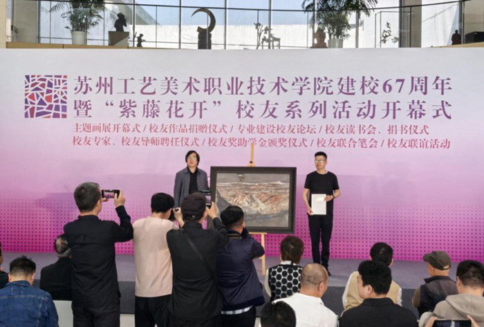 4月28日上午9點,“萬里送行舟——張銳油畫作品展”在蘇州工藝美術職業技術學院美術館開幕,本次展覽為蘇州工藝美術職業技術學院建校67周年暨“紫藤花開”校友系列活動之一。開幕式上同時還舉行了張銳作品捐贈及蘇工藝“專業建設專家”聘書頒發等儀式。