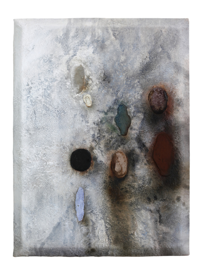 孟陽陽,《懸珠》,2024,布面綜合材料與礦物顏料。圖片由藝術家提供。