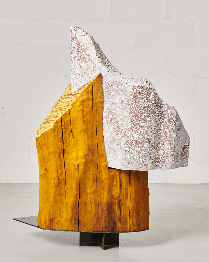 阿琳 · 舍切特,《山丘是活著的》,2023,釉面陶瓷、涂染硬木和鋼材。圖片由藝術家提供。