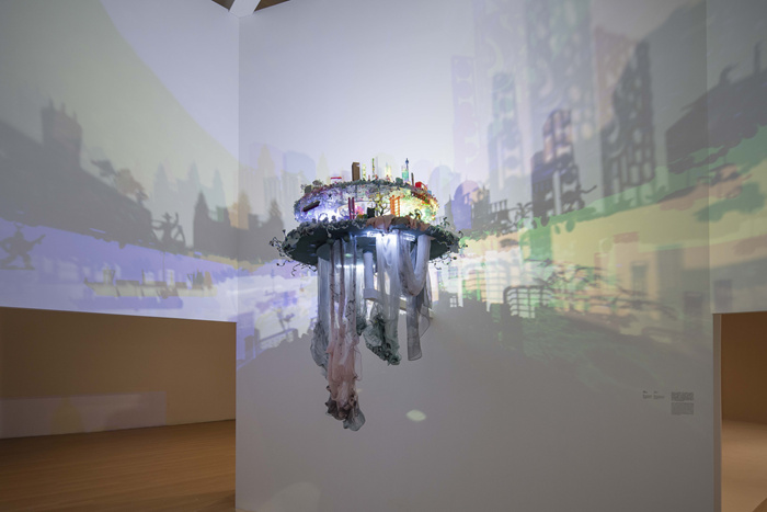 阮家儀的作品聚焦香港百年發展的地域歷史,無論是直觀的航海術語“Land ho!”(前方靠岸?。┻€是如旋轉木馬燈一般光怪陸離的投影,其“真身”都是樸素如塑料玩具、小商品等,卻搭建出了宏偉的城市景觀。觀看立場在于敘事視角的局內外之差。