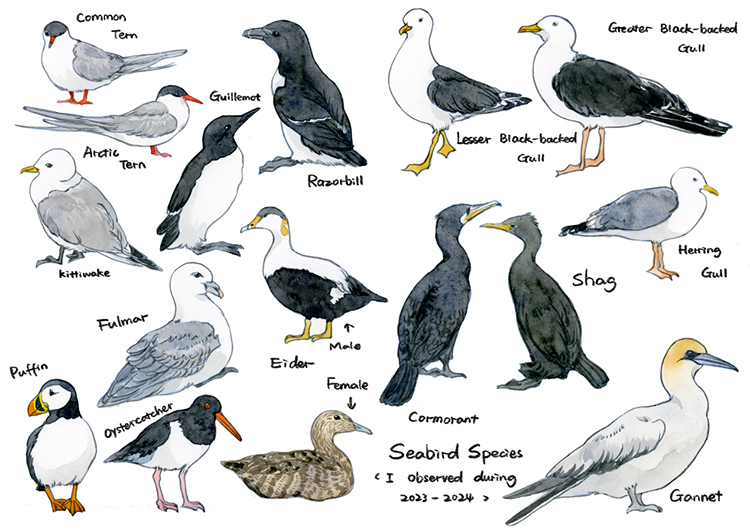 冬六的藝術創作深深扎根于親身的觀察與體驗。過去三年,她在英國愛丁堡生活,得益于良好的動物保護氛圍,有著很多觀察野生動物的機會,并以此逐漸建立起以真實的野生動物行為為核心的視覺研究方法。她曾提到,“五月島的風、海鳥、季節變幻都教會我什么是‘真實的生命力’?!痹趷鄱”て陂g,冬六對蘇格蘭特有的海鳥種群產生了濃厚興趣,尤其被自然保護區中棲息的塘鵝、海鸚、燕鷗等海鳥的群居行為和季節遷徙規律所震撼,由此開啟了名為《Scottish Seabirds》的創作系列。