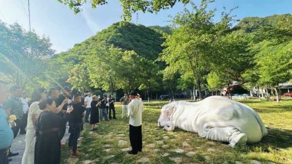 而作為襄陽唯一的全山區縣,此次展覽則是??瞪鷳B經濟與文化自信的雙重賦能。過渡灣鎮黨委書記胡佳芳也表示,邱啟敬的作品將神獸雕琢成“長”在荊山大地上的文化地標,使展覽成為“帶不走的山水,留得下的文明”。讓??等酥匦聦徱暷_下土地——每一塊巖石、每一顆草木都可能鐫刻著《山海經》的密碼,每一道山澗都流淌著楚文化的基因。
