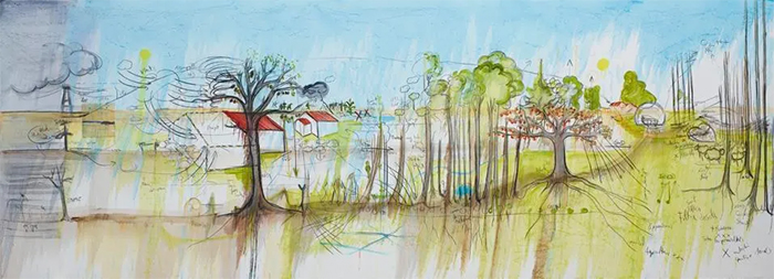 伊貝爾非常喜歡用鮮明的綠色描繪樹林,“超級綠是春天第一棵鵝耳櫪枝條的顏色,也是最人造的顏色?!边@位藝術家認為,“綠色不是一種冷色,而是一種充滿活力的顏色。”