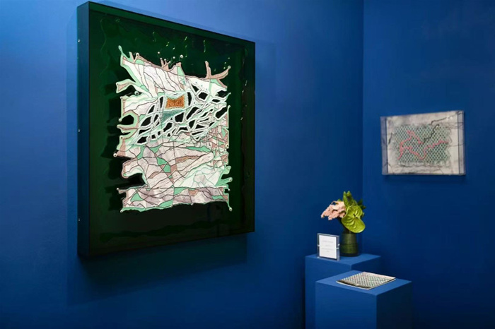 與之形成互文的“METRO SYSTEM都市山水”,則將目光從宇宙尺度轉向個體記憶與城市生活的微觀層面。傳統山水畫的“山水”是自然形成的連接網絡,就像樹根把土壤連成整體;而“都市山水”的“Metro”(地鐵/交通)是人工制造的連接動脈,手機信號、飛機航線、地鐵隧道,甚至你家電表跳動的數字,都是當代社會的“山水脈絡”。