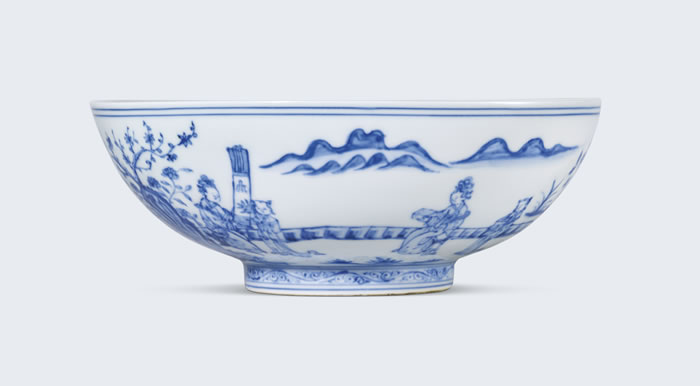 Lot 968 明成化,青花庭院仕女四藝圖大碗,D 19.7