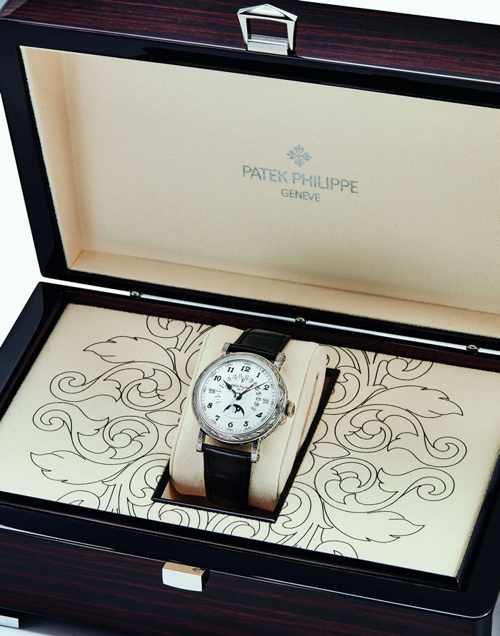 Lot 1520 百達翡麗,18K白金 自動上弦手工簪刻雕花腕表