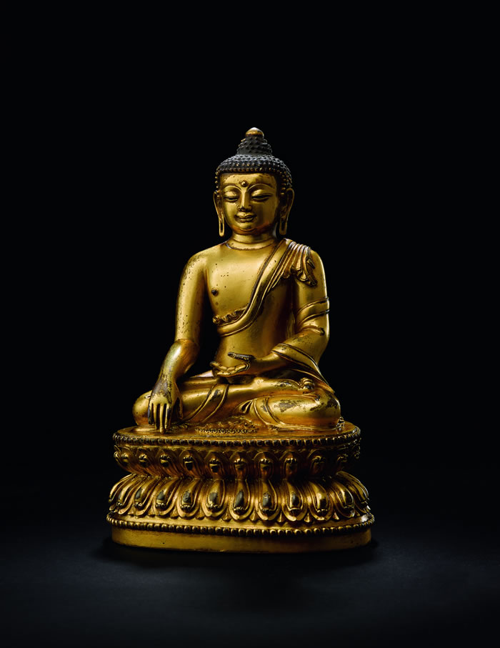 Lot 1269 明永樂(宮廷),銅鎏金釋迦牟尼佛,H 15 cm,款識:“大明永樂年施”六字楷書款。
