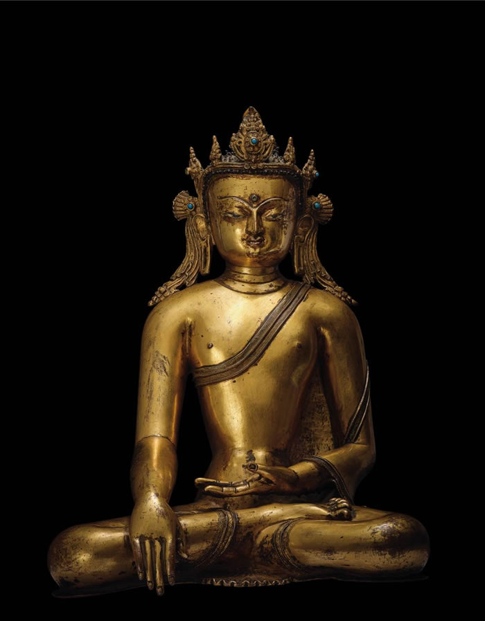 Lot 1314 尼泊爾14世紀,銅鎏金寶冠釋迦牟尼佛,H 30.7 cm