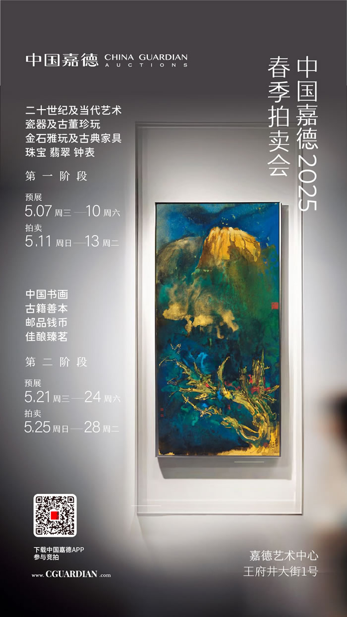 第一階段:二十世紀及當代藝術、瓷器及古董珍玩、金石雅玩及古典家具、珠寶翡翠鐘表,5月7日-10日預展,5月11日-13日拍賣。