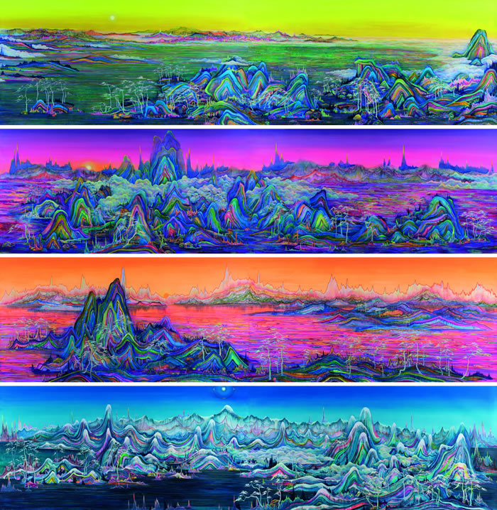 Lot 318 黃宇興,千里江山圖(一組4件) 2017 年至2022 年,150×600 cm.×4 布面 丙烯