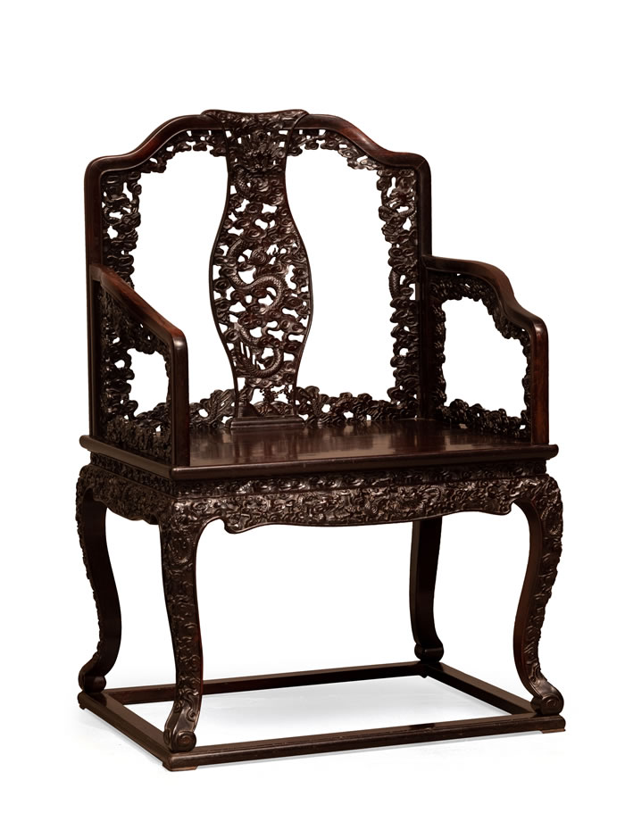 Lot 2079,清乾隆,御制紫檀雕五爪龍紋有束腰帶托泥扶手椅 77×59×115.5cm