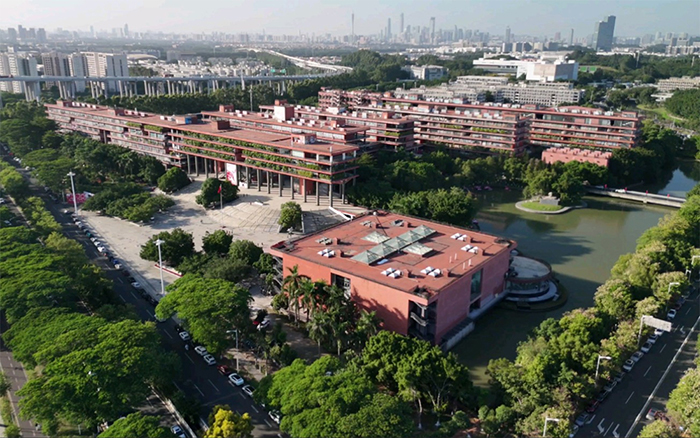 廣州美院美術館分為大學城校區和昌崗校區,昌崗校區包含昌崗美術館和嶺南畫派紀念館。大學城美術館位于番禺區大學城外環西路,這里依傍珠江水系,沿岸是一片紫荊花海,校區緊鄰廣東中醫藥博物館、廣州檔案館、南漢二陵博物館,優美豐盈的自然人文景觀為美術館營造了一處理想的藝術棲息地。