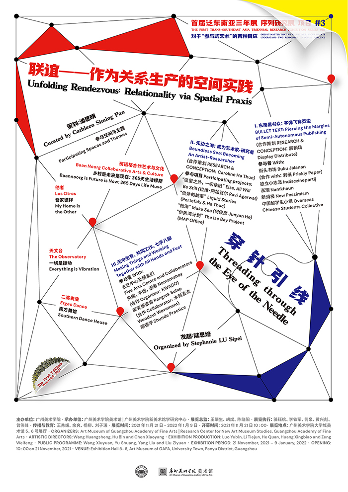 《首屆泛東南亞三年展序列研究展項目3: 對于“參與式藝術”的兩種回應》海報,展覽旨在探討東南亞藝術在“參與式藝術”這一領域的多元發展路徑,也為觀眾提供了一個深入了解東南亞在國際交流與本土特色中的展示窗口。