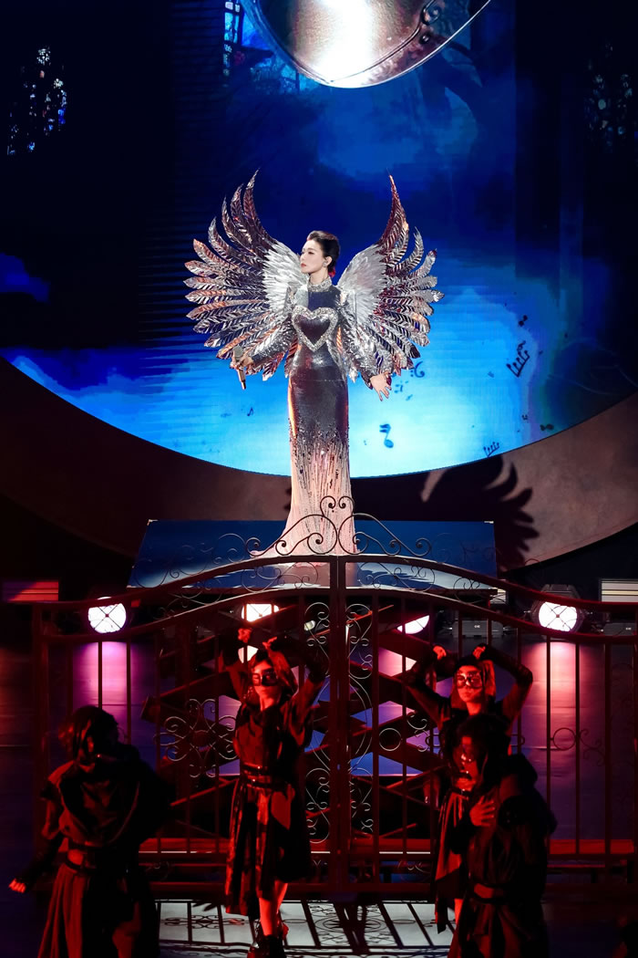 音樂會在曲目設計上大膽突破,既有《春天的芭蕾》《瑪依拉變奏曲》《漢服青史》等常思思的經典聲樂代表作,也有《The pantom of the opera》《Time to say goodbye》《Ich liebe dich》等高難度美聲作品;更令人驚喜的是,特別改編版的《千年等一回》、發布多年但卻是音樂會首唱的《水母》以及風格靈動俏皮又兼具超高花腔難度的《廣寒宮》,在常思思的演繹下更讓觀眾眼前一亮,她以其標志性的花腔和收放自如的演唱技巧,在不同風格作品中自如切換。