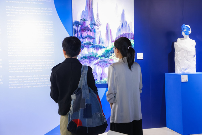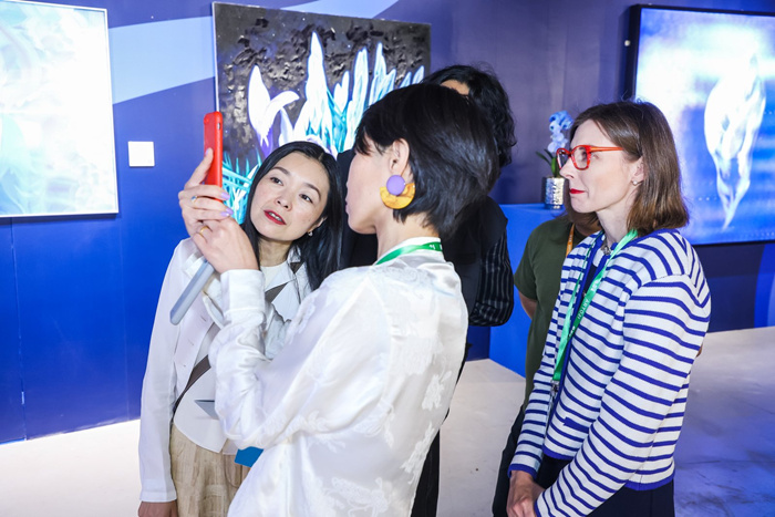 費德洛娃強調,科技在她眼中不是與自然對立的冷峻力量,而是可以被溫柔馴化的感知媒介,一種重新建立聯系的橋梁。論壇結束后,兩位藝術家也共同走進《蛹變》的展覽現場,在作品前繼續交流對自然、技術與女性創作身份的理解與反思,展現出藝術實踐作為思想對話平臺的開放性與多元性。