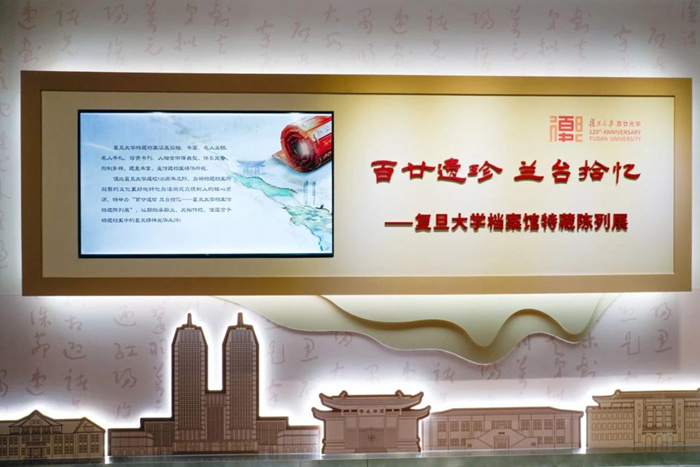 5月22日,在復旦大學120周年校慶和第17個國際檔案日到來之際,“喜迎百廿慶請聽檔案說”——復旦大學檔案捐贈儀式在特藏檔案館舉行。復旦大學黨委副書記周虎頒發捐贈證書。上海市檔案局(館)副局(館)長葛影敏、周虎共同開啟“百廿遺珍蘭臺拾憶——復旦大學檔案館特藏陳列展”大門。復旦大學校長助理、研究生院常務副院長陳焱,馬相伯玄孫馬天若,謝希德之子曹惟正等捐贈者代表,校檔案征集聯絡員五十余人參加活動。