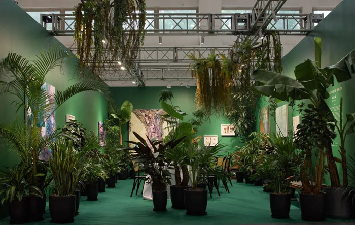 此外,19個“特別藝術項目”同樣亮點紛呈。演員朱珠作為本屆北京當代藝博會的“藝術主語人”,策劃的項目“歡樂之家”(House of Mirth)通過繪畫、裝置、雕塑和熱帶植物,將十年前在仰光的跨年體驗重現于藝博會現場,邀請觀眾在這個記憶空間中重新喚起各種充滿生命力的情緒。朱珠希望“藝術能成為 5月人們訴說北京的主語,在北京當代感受世界藝術,共享北京時間”,而“歡樂之家”無疑為這一愿景增添了濃墨重彩的一筆。