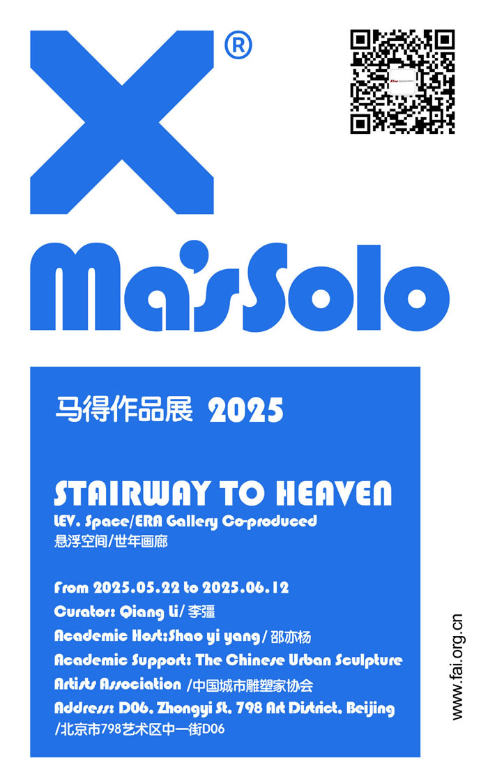 5月22日,由懸浮空間與世年畫廊聯合主辦的“馬得作品展2025”在北京798正式啟幕。藝術家馬得以標志性的冷峻風格,將展廳內連接一、二層的樓梯直接轉化為裝置作品《天梯》,在僅3米寬的極窄空間中,展開一場關于科技、哲學與理想主義的思辨實驗。