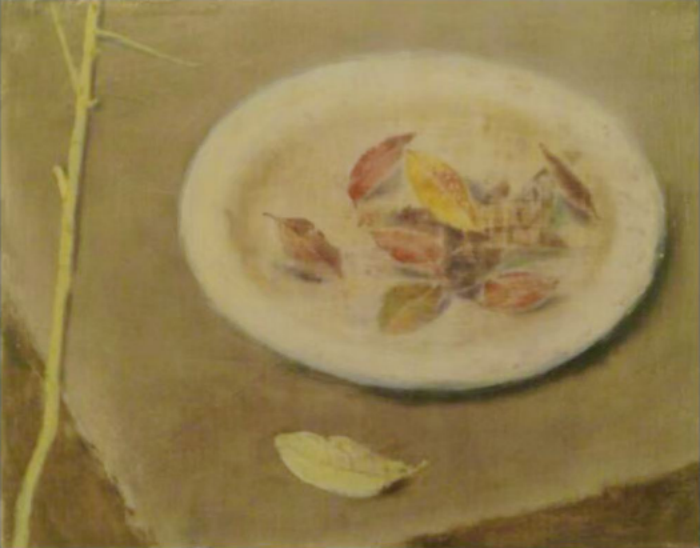 夏禹 盤子和樹葉 40×50 cm 木板坦培拉 2012年