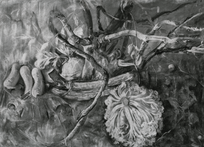 靜物題材本身就有東方意味?!拔铩笔且环N借代、比喻,是中國美學,是欲言又止的表達,是絢爛的沉默。在西方藝術史中長期被邊緣化的風景、靜物,在中國語境下卻顯得非常重要,這種重要性從中國偉大的詩歌傳統中就可以看到。巧合的是,在塞尚、馬奈、梵高那里,風景和靜物成了現代主義巨變的標志?!皻q寒三友”被中國文人賦予了美好的品質,中國文化中對自然的向往,使藝術家更贊頌“物”的性格與生命力度。