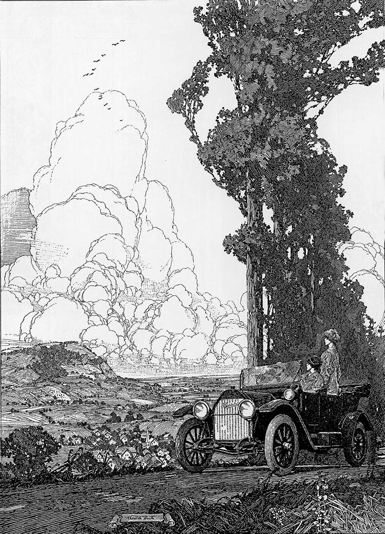 Franklin Booth,Landscape With Car,圖片來源:outsidelogic